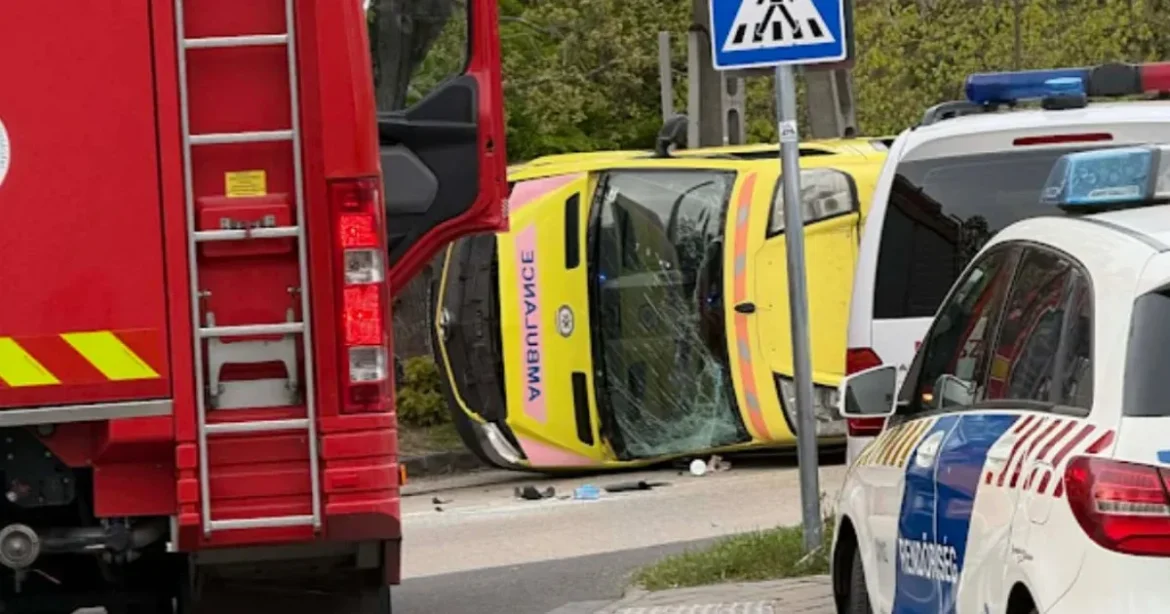 Furgon ütközött mentőautóval a XIII. kerületben, a mentő felborult.